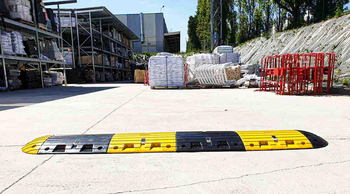 This is Speed Bump 450mm x 2.5 m x 70 mm 10mph Speed Limit manufactured by RS PRO. The manufacturer part number is 204-1758. 15km/h is the Maximum Speed Limit of the product . It has a decent black, yellow colour. The product is made from highly stable and reliable rubber. In addition, the height is 70 mm. Furthermore, the product is 500mm wide. The product comes in 2.5 m depth. It has a standard 40mm size cable . It has a cable protection quality yes . It is created with lag screw and anchor fixings .
