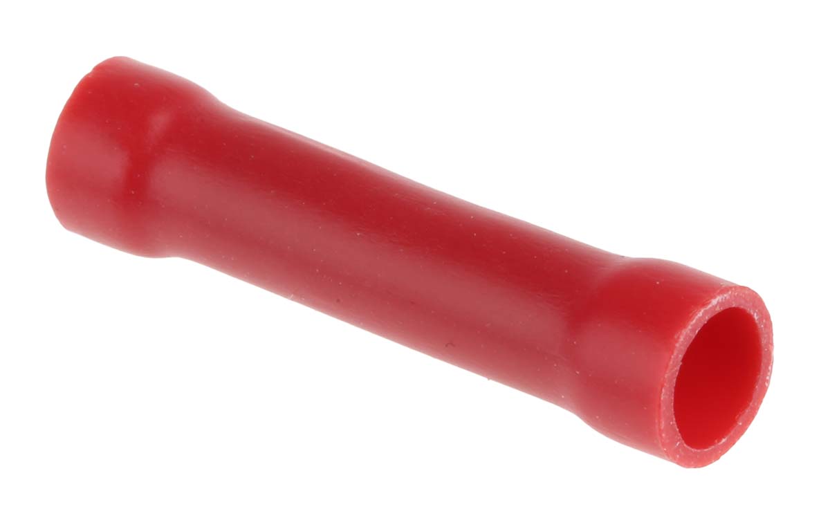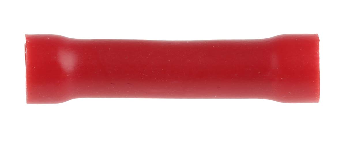 This is Butt Wire Splice Connector Red Insulated Tin Plated 22 → 16 AWG manufactured by RS Pro. The manufacturer part number is 534-288. Its diameter is 4mm. It has a standard butt type splice . The wire has a maximum size of 1.5mm². It has a decent red colour. While the minimum wire size AWG includes 22awg. On the other hand, the wire has 0.5mm² of minimum size. It has a robust pvc insulation material. The high-quality tin is used as contact plating material. It has an overall length of 24.5mm. Insulation Option: insulated. Its maximum wires size includes 16awg. Concerning wire's size, it is 22 → 16 awg. The product is made from sturdy copper materials.