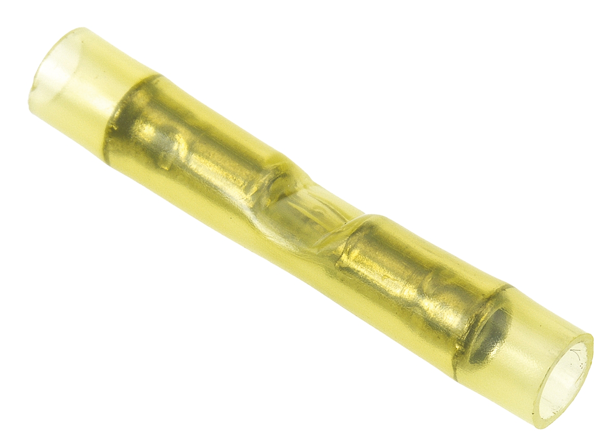 This is PIDG Butt Wire Splice Connector Yellow Insulated Tin Plated 26 → 22 AWG manufactured by TE Connectivity. The manufacturer part number is 2-323994-2. Its diameter is 2.08mm. It has a standard butt type splice . The product pidg, is a highly preferred choice for users. It has a decent yellow colour. It has a robust nylon insulation material. The high-quality tin is used as contact plating material. It has an overall length of 22.61mm. Insulation Option: insulated. Concerning wire's size, it is 26 → 22 awg. The product is made from sturdy copper materials.