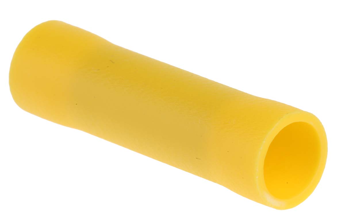 This is Butt Wire Splice Connector Yellow Insulated Tin Plated 12 → 10 AWG manufactured by RS Pro. The manufacturer part number is 613-9766. Its diameter is 6.3mm. It has a standard butt type splice . The wire has a maximum size of 6mm². It has a decent yellow colour. While the minimum wire size AWG includes 12awg. On the other hand, the wire has 4mm² of minimum size. It has a robust vinyl insulation material. The high-quality tin is used as contact plating material. It has an overall length of 26mm. Insulation Option: insulated. Its maximum wires size includes 10awg. Concerning wire's size, it is 12 → 10 awg. The product is made from sturdy copper materials.