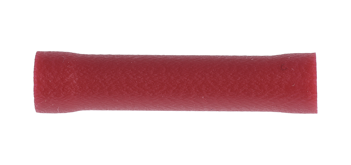 This is Butt Wire Splice Connector Red Insulated Tin Plated 22 → 16 AWG manufactured by RS Pro. The manufacturer part number is 613-9794. Its diameter is 4mm. It has a standard butt type splice . The wire has a maximum size of 1.5mm². It has a decent red colour. While the minimum wire size AWG includes 22awg. On the other hand, the wire has 0.5mm² of minimum size. It has a robust vinyl insulation material. The high-quality tin is used as contact plating material. It has an overall length of 24.2mm. Insulation Option: insulated. Its maximum wires size includes 16awg. Concerning wire's size, it is 22 → 16 awg. The product is made from sturdy copper materials.