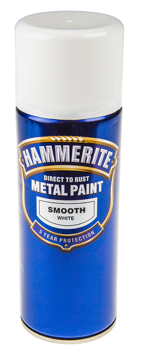This is 400mL White Smooth Spray Paint manufactured by Hammerite. The manufacturer part number is 5084782. It has a decent white colour. A quality product with a nice smooth finish. It has approximately 400ml size can .