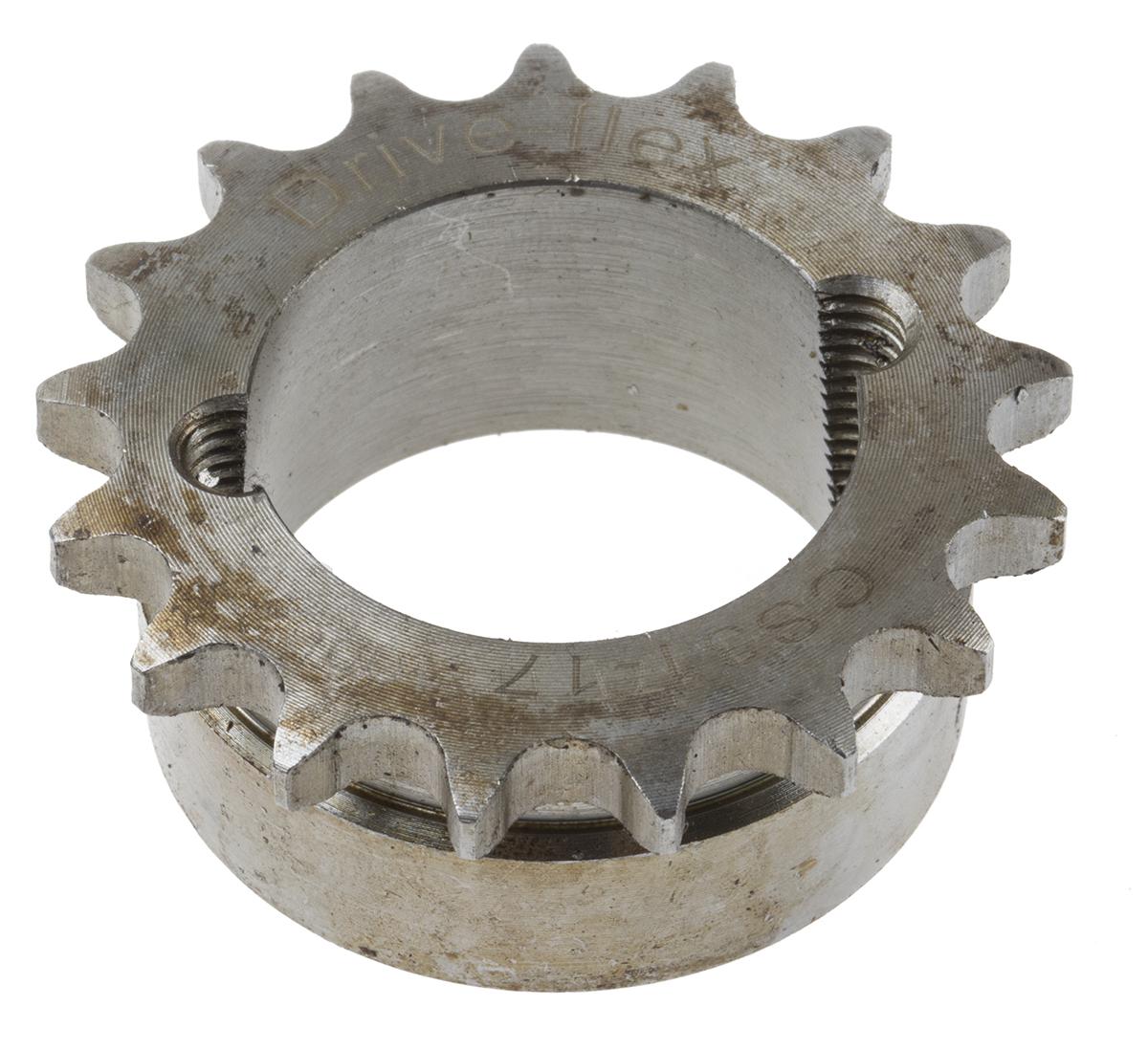 This is 17 Tooth Taper Bush Sprocket manufactured by RS Pro. The manufacturer part number is 183-322. It is to fit British standard chain type 06b-1 . The product is made from highly stable and reliable steel. Its sprocket width is of 22mm . The integrated bore is a type of taper bush. It has about 51.83mm pitch diameter . It contains 17 teeth.