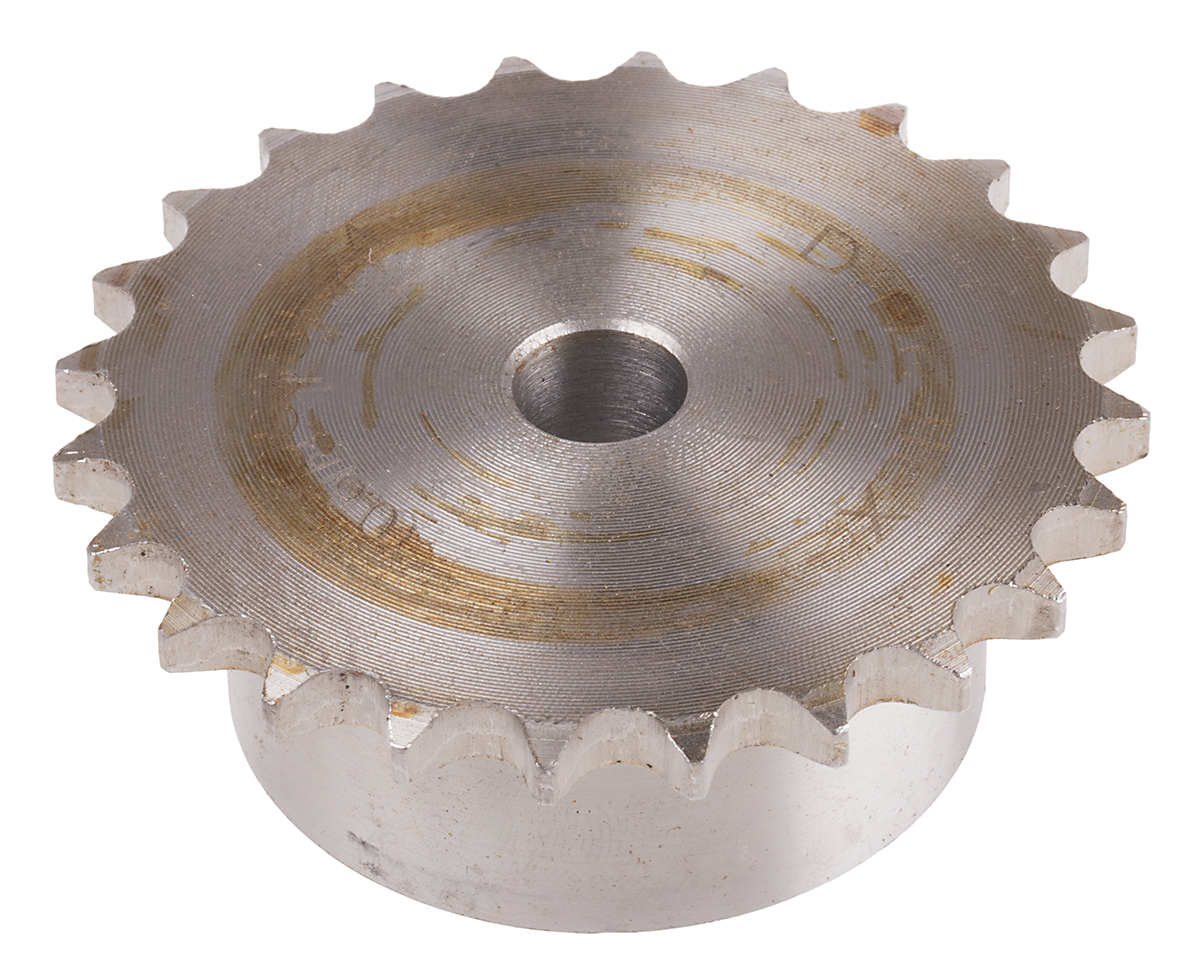 This is 24 Tooth Pilot Sprocket manufactured by RS Pro. The manufacturer part number is 184-375. It is to fit British standard chain type 06b-1 . The product is made from highly stable and reliable steel. It has a maximum 14mm bore diameter . Its sprocket width is of 40mm . The integrated bore is a type of pilot. It has about 72.97mm pitch diameter . It contains 24 teeth.