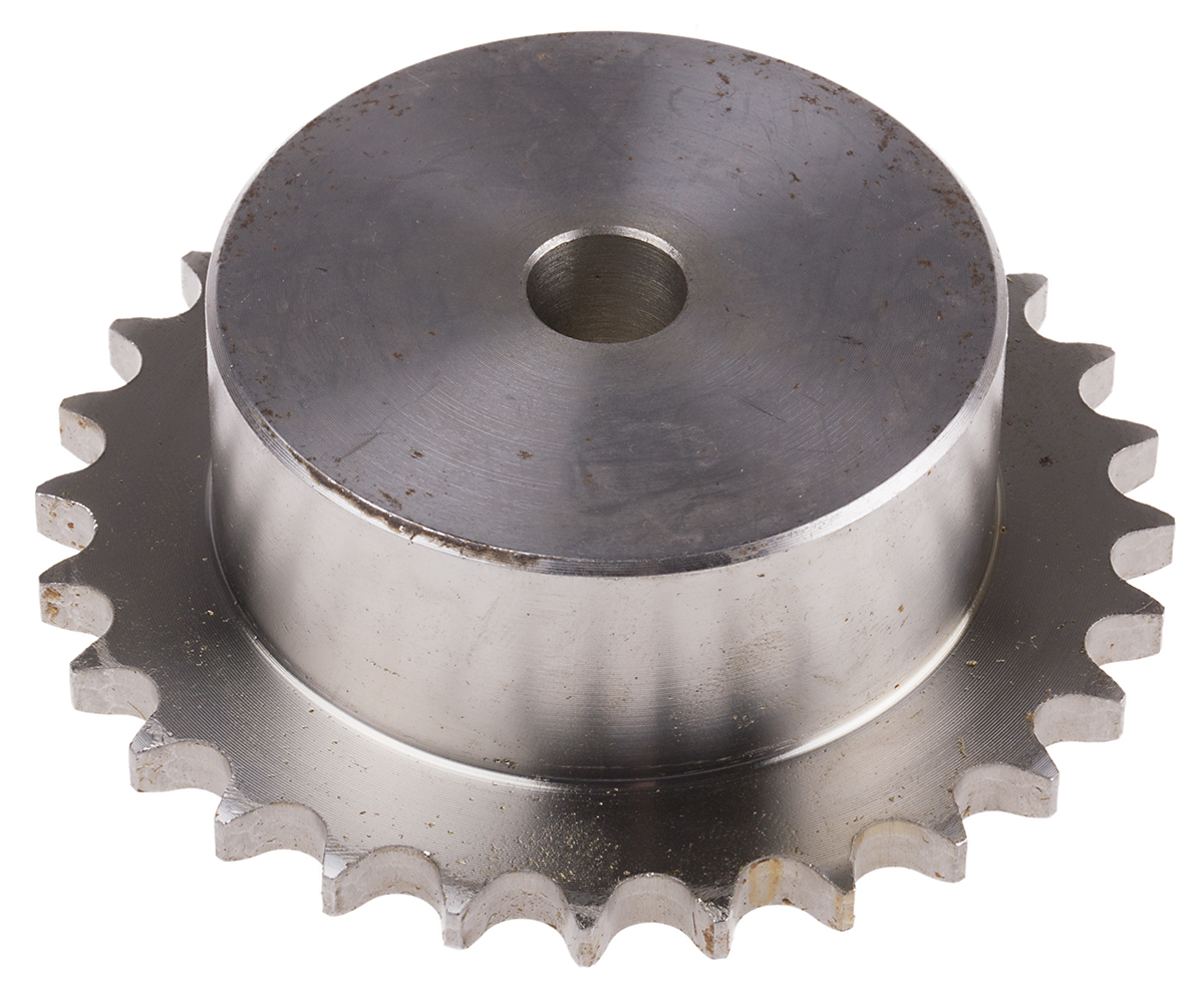 This is 28 Tooth Pilot Sprocket manufactured by RS Pro. The manufacturer part number is 184-381. It is to fit British standard chain type 06b-1 . The product is made from highly stable and reliable steel. It has a maximum 14mm bore diameter . Its sprocket width is of 40mm . The integrated bore is a type of pilot. It has about 85.07mm pitch diameter . It contains 28 teeth.