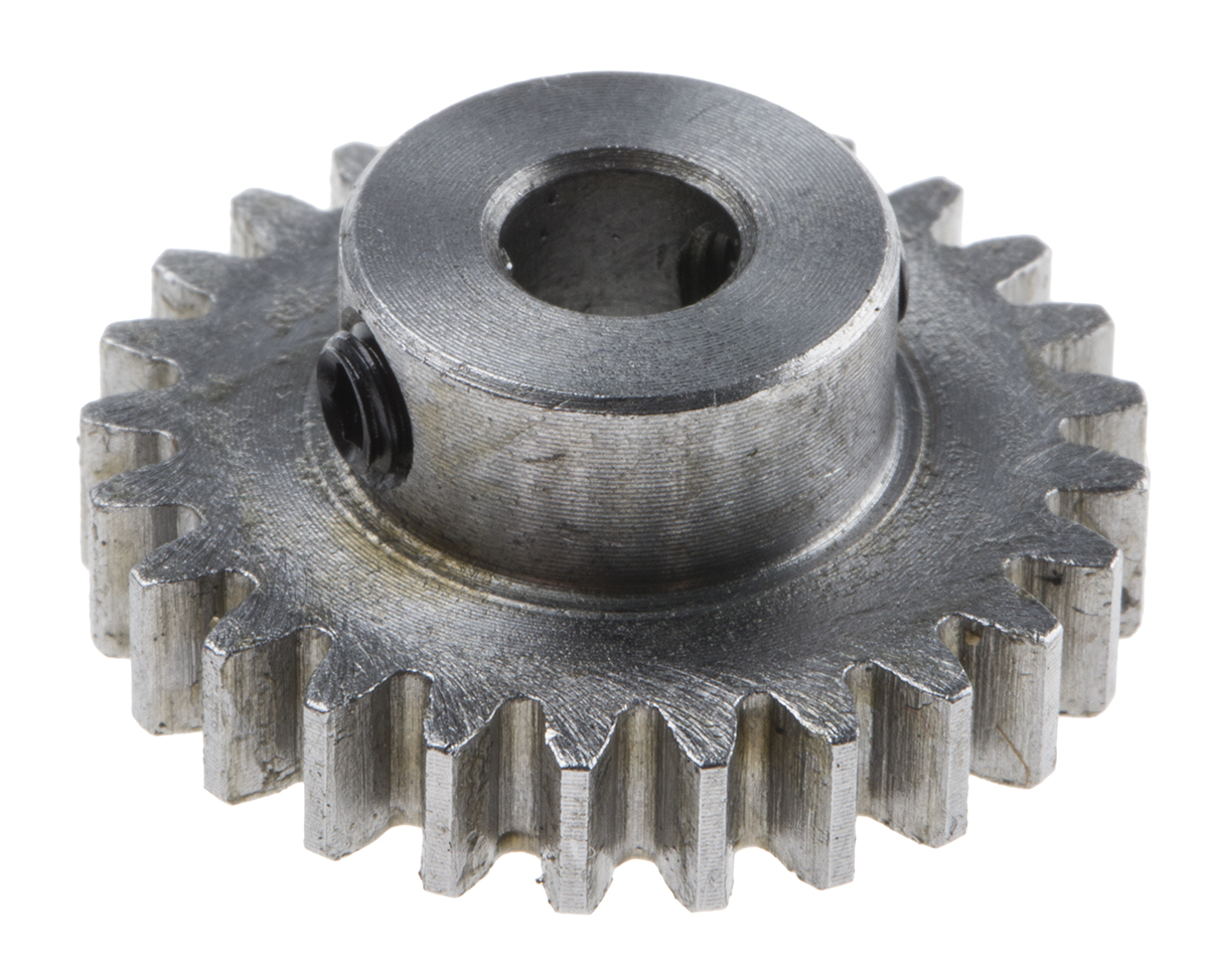 This is Steel 25 Teeth Spur Gear 25mm Pitch Diam. 14mm Hub Diam. 6mm Bore Diam. manufactured by RS Pro. The manufacturer part number is 878-7913. The product is made from highly stable and reliable steel. Its face is 5mm in width . It includes 1 module . It has about 25mm pitch diameter . It contains a standard 6mm bore diameter . It contains 25 teeth. Its hub diameter is 14mm .