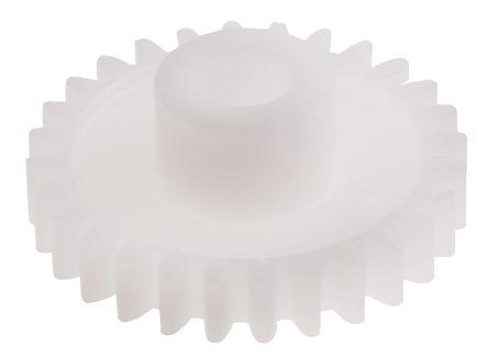 This is POM 28 Teeth Spur Gear 22.4mm Pitch Diam. 10mm Hub Diam. 5mm Bore Diam. manufactured by RS Pro. The manufacturer part number is DS08-28B. The product is made from highly stable and reliable pom. Its face is 4mm in width . It includes 0.8 module . It has about 22.4mm pitch diameter . It contains a standard 5mm bore diameter . It contains 28 teeth. Its hub diameter is 10mm .