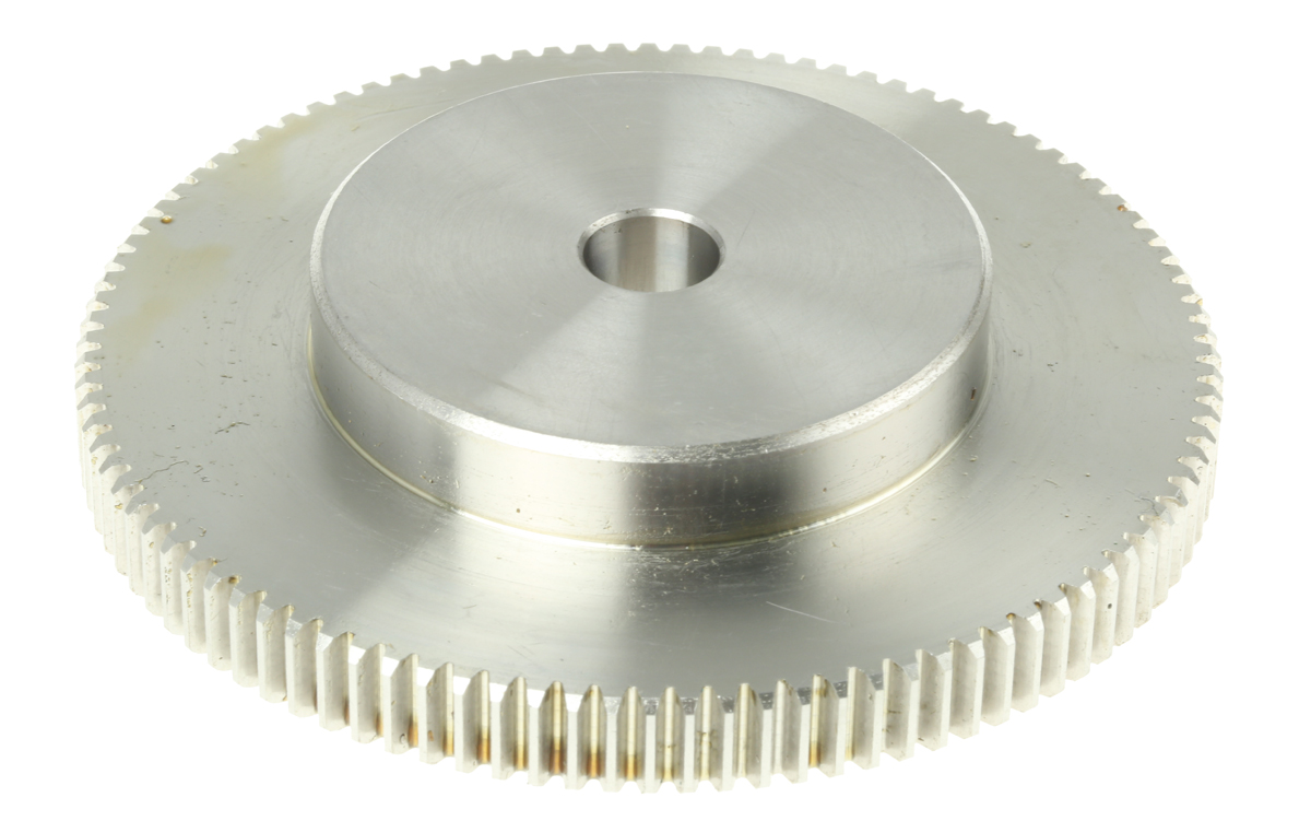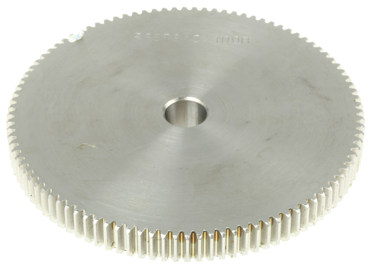 This is Stainless Steel 100 Teeth Spur Gear 100mm Pitch Diam. 60mm Hub Diam. 12mm Bore Diam. manufactured by RS Pro. The manufacturer part number is 521-6806. The product is made from highly stable and reliable stainless steel. Its face is 10mm in width . It includes 1 module . It has about 100mm pitch diameter . It contains a standard 12mm bore diameter . It contains 100 teeth. Its hub diameter is 60mm .