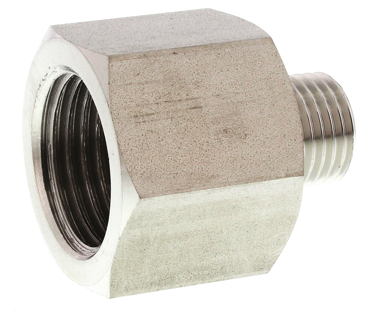 This is Stainless Steel Hexagon Straight Increaser 1/4in R(T) Male x 1/2in G(P) Female manufactured by Legris. The manufacturer part number is 1861 13 21. The fitting direction is straight . This increaser tool is easy to use with versatile applications in various settings. It has a standard 1/2in thread size 2 . It has a standard 1/4in thread size 1 . Additionally, its pipe fitting connection is of threaded type . It is a hexagon product with unique specifications. In addition, its connection is of female gender 2 . Moreover, its thread is of g standard 2 . Its connection 1 is of male gender . In addition, it has a thread of r (taper) standard 1 .