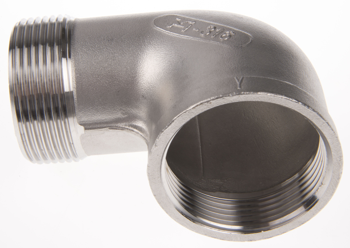 This is Stainless Steel Circular 90° Elbow 1-1/2in R(T) Female x 1-1/2in R(T) Male manufactured by RS Pro. The manufacturer part number is 499-3366. The fitting direction is 90° . This elbow tool is easy to use with versatile applications in various settings. It has a standard 1-1/2in thread size 2 . It has a standard 1-1/2in thread size 1 . Additionally, its pipe fitting connection is of threaded type . It is a circular product with unique specifications. Moreover, its thread is of r (taper) standard 2 . Its connection 1 is of female gender . In addition, its connection is of male gender 2 . In addition, it has a thread of r (taper) standard 1 .