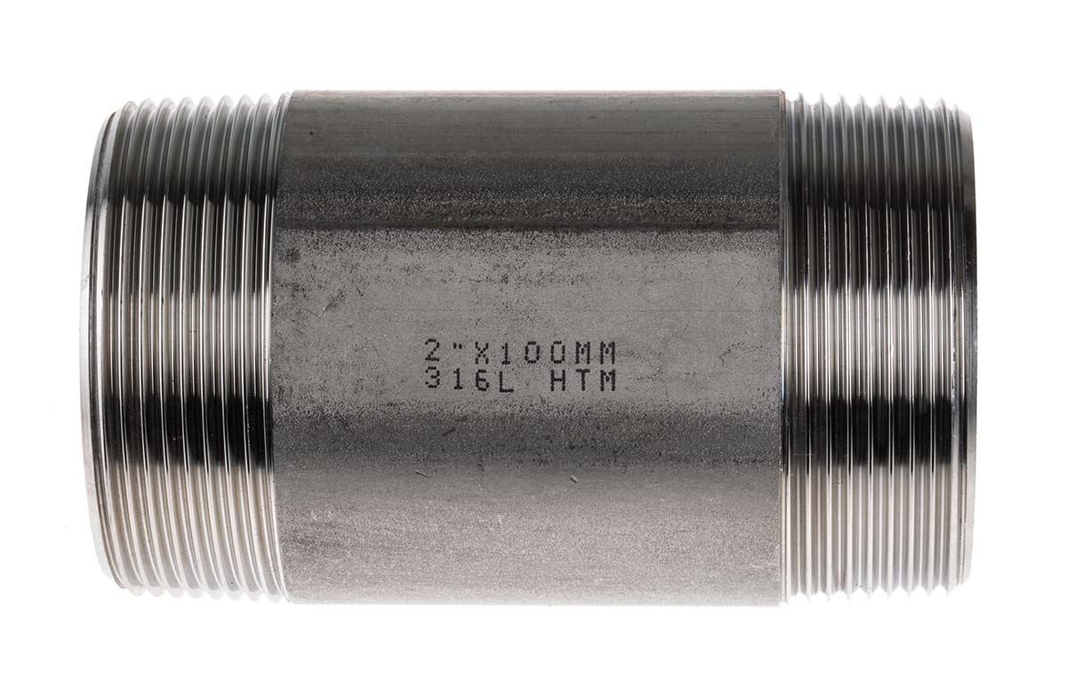This is Stainless Steel Circular Barrel Nipple 2in R(T) Male x 2in R(T) Male 3.94in manufactured by RS Pro. The manufacturer part number is 499-3293. The fitting direction is straight . This barrel nipple tool is easy to use with versatile applications in various settings. It has a standard 2in thread size 2 . Its accurate length is 100.076mm. It has a standard 2in thread size 1 . Additionally, its pipe fitting connection is of threaded type . It is a circular product with unique specifications. Moreover, its thread is of r (taper) standard 2 . Its connection 1 is of male gender . In addition, its connection is of male gender 2 . In addition, it has a thread of r (taper) standard 1 .