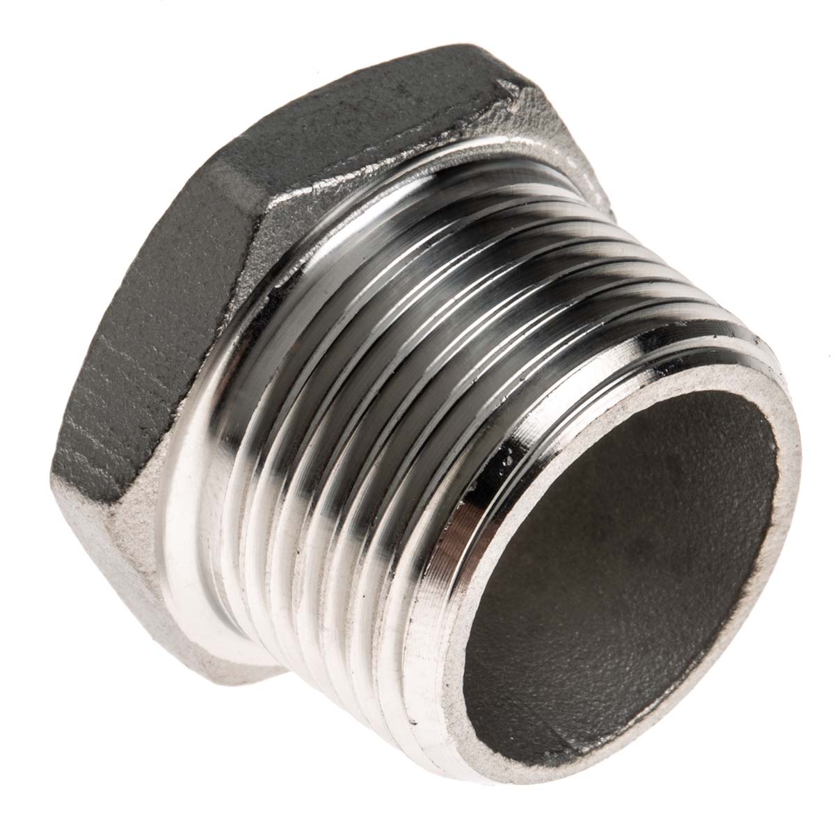 This is Stainless Steel Hexagon Plug 3/4in R(T) Male 0.92in manufactured by RS Pro. The manufacturer part number is 499-3473. This plug tool is easy to use with versatile applications in various settings. Its accurate length is 23.368mm. It has a standard 3/4in thread size 1 . Additionally, its pipe fitting connection is of threaded type . It is a hexagon product with unique specifications. Its connection 1 is of male gender . In addition, it has a thread of r (taper) standard 1 .