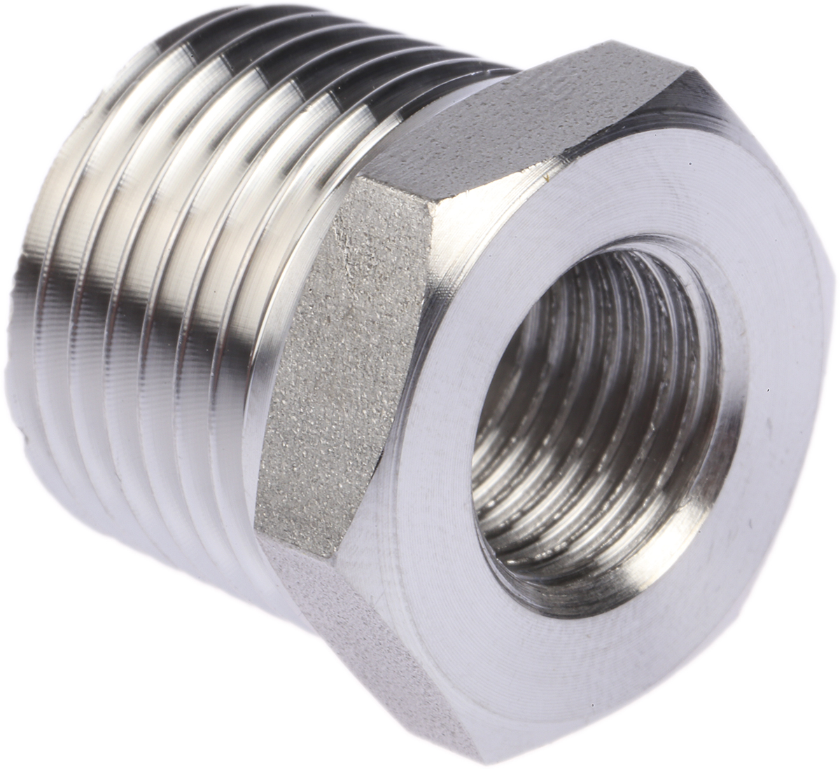 This is Stainless Steel Hexagon Straight Reducer 1/2in R(T) Male x 1/4in G(P) Female manufactured by Legris. The manufacturer part number is 1863 21 13. The fitting direction is straight . This reducer tool is easy to use with versatile applications in various settings. It has a standard 1/4in thread size 2 . It has a standard 1/2in thread size 1 . Additionally, its pipe fitting connection is of threaded type . It is a hexagon product with unique specifications. In addition, its connection is of female gender 2 . Moreover, its thread is of g standard 2 . Its connection 1 is of male gender . In addition, it has a thread of r (taper) standard 1 .