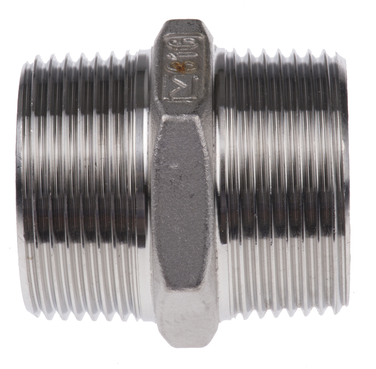 This is Stainless Steel Hexagon Hexagon Nipple 1-1/4in R(T) Male x 1-1/4in R(T) Male 2.03in manufactured by RS Pro. The manufacturer part number is 499-3170. This hexagon nipple tool is easy to use with versatile applications in various settings. It has a standard 1-1/4in thread size 2 . Its accurate length is 51.562mm. It has a standard 1-1/4in thread size 1 . Additionally, its pipe fitting connection is of threaded type . It is a hexagon product with unique specifications. Moreover, its thread is of r (taper) standard 2 . Its connection 1 is of male gender . In addition, its connection is of male gender 2 . In addition, it has a thread of r (taper) standard 1 .
