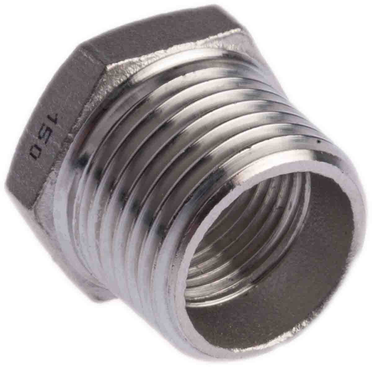 This is Stainless Steel Hexagon Bush 1/2in R(T) Male x 3/8in G(P) Female 0.87in manufactured by RS Pro. The manufacturer part number is 499-3445. This bush tool is easy to use with versatile applications in various settings. It has a standard 3/8in thread size 2 . Its accurate length is 22.098mm. It has a standard 1/2in thread size 1 . Additionally, its pipe fitting connection is of threaded type . It is a hexagon product with unique specifications. Moreover, its thread is of g standard 2 . Its connection 1 is of male gender . In addition, its connection is of female gender 2 . In addition, it has a thread of r (taper) standard 1 .