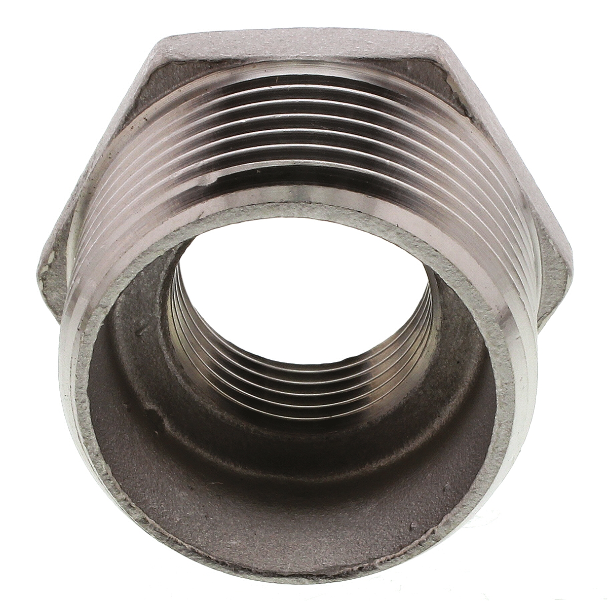 This is Stainless Steel Hexagon Bush 1in R(T) Male x 1/2in G(P) Female 1.06in manufactured by RS Pro. The manufacturer part number is 499-3530. This bush tool is easy to use with versatile applications in various settings. It has a standard 1/2in thread size 2 . Its accurate length is 26.924mm. It has a standard 1in thread size 1 . Additionally, its pipe fitting connection is of threaded type . It is a hexagon product with unique specifications. Moreover, its thread is of g standard 2 . Its connection 1 is of male gender . In addition, its connection is of female gender 2 . In addition, it has a thread of r (taper) standard 1 .
