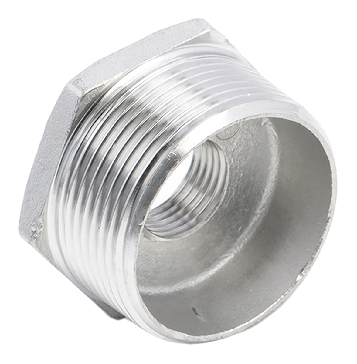 This is Stainless Steel Hexagon Bush 1-1/2in R(T) Male x 1/2in G(P) Female 1.18in manufactured by RS Pro. The manufacturer part number is 499-3580. This bush tool is easy to use with versatile applications in various settings. It has a standard 1/2in thread size 2 . Its accurate length is 29.972mm. It has a standard 1-1/2in thread size 1 . Additionally, its pipe fitting connection is of threaded type . It is a hexagon product with unique specifications. Moreover, its thread is of g standard 2 . Its connection 1 is of male gender . In addition, its connection is of female gender 2 . In addition, it has a thread of r (taper) standard 1 .