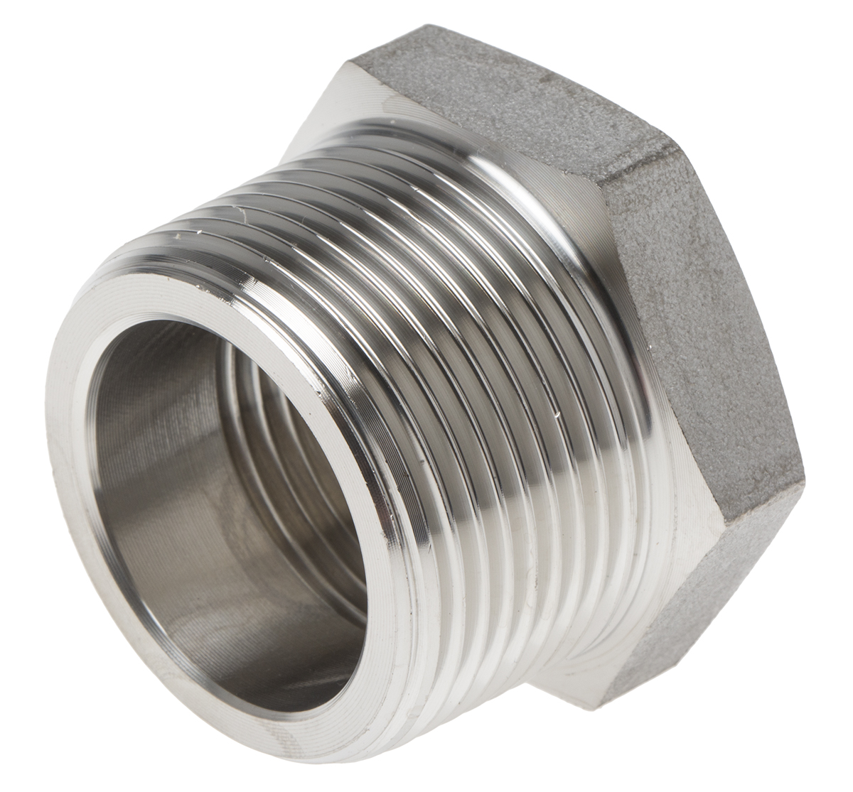 This is Stainless Steel Hexagon Straight Bush 1-1/4in R(T) Male x 1in Rc(T) Female 1.11in manufactured by RS Pro. The manufacturer part number is 826-7093. The fitting direction is straight . This bush tool is easy to use with versatile applications in various settings. It has a standard 1in thread size 2 . Its accurate length is 28.194mm. It has a standard 1-1/4in thread size 1 . Additionally, its pipe fitting connection is of threaded type . It is a hexagon product with unique specifications. In addition, its connection is of female gender 2 . Moreover, its thread is of rc (taper) standard 2 . Its connection 1 is of male gender . In addition, it has a thread of r (taper) standard 1 .