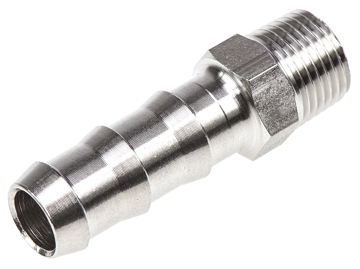 This is Stainless Steel Hexagon Straight Tailpiece Adapter 1/8in R(T) Male / Male manufactured by Legris. The manufacturer part number is 1823 07 10. The fitting direction is straight . This tailpiece adapter tool is easy to use with versatile applications in various settings. It has a standard 1/8in thread size 1 . Additionally, its pipe fitting connection is of threaded type . It is a hexagon product with unique specifications. In addition, its connection is of male gender 2 . Its connection 1 is of male gender . In addition, it has a thread of r (taper) standard 1 .