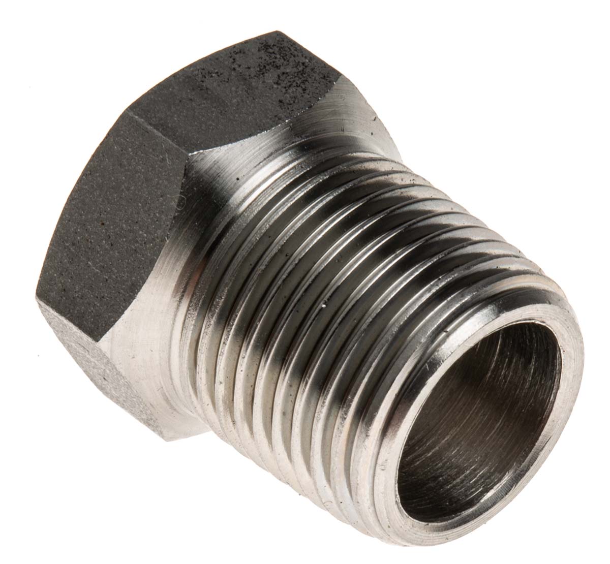 This is Stainless Steel Hexagon Straight Bush 3/8in R(T) Male x 1/4in Rc(T) Female 0.67in manufactured by RS Pro. The manufacturer part number is 826-7078. The fitting direction is straight . This bush tool is easy to use with versatile applications in various settings. It has a standard 1/4in thread size 2 . Its accurate length is 17.018mm. It has a standard 3/8in thread size 1 . Additionally, its pipe fitting connection is of threaded type . It is a hexagon product with unique specifications. Moreover, its thread is of rc (taper) standard 2 . Its connection 1 is of male gender . In addition, its connection is of female gender 2 . In addition, it has a thread of r (taper) standard 1 .