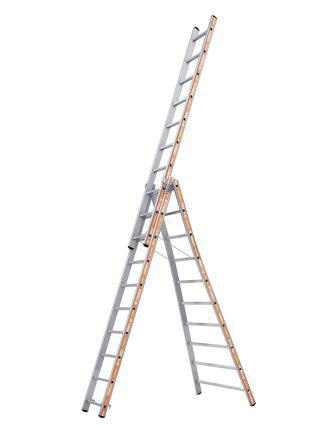 This is Aluminium Combination Ladder 10 steps 2.99m open length manufactured by TUBESCA. The manufacturer part number is 01253010. The typical product's weight is 21.4kg. Moreover, it has approximately 2.99m open length . It has 10 treads . It has about 8.86m platform height . It has a tread material of aluminium . The product has a/an aluminium stiles material . Its maximum load is approximately 150kg . It consists of 3 sections.