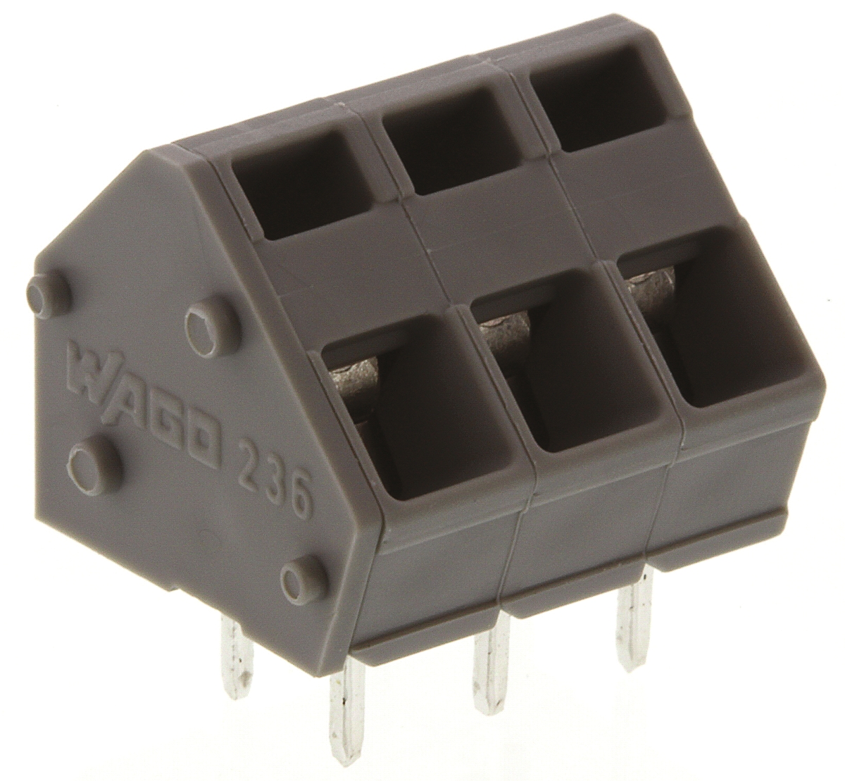 This is Terminal Strip 45 ° 3way 1 Row 15A 300 V length 13mm Grey manufactured by Wago. The manufacturer part number is 236-403. The product has a current rating of 15a. Moreover, the product has a nominal 300 v voltage rating. The product 236, is a highly preferred choice for users. It has a decent grey colour. The product is made from highly stable and reliable polyamide. Its accurate length is 13mm. It allows cage clamp termination method. Furthermore, the product is 17.3mm wide. The product comes in 14mm depth. It comes in 1 of rows. Moreover, the product is 5.08mm. The product contains 3 contacts. It comes in pcb terminal block configuration. It has 45 ° body orientation.