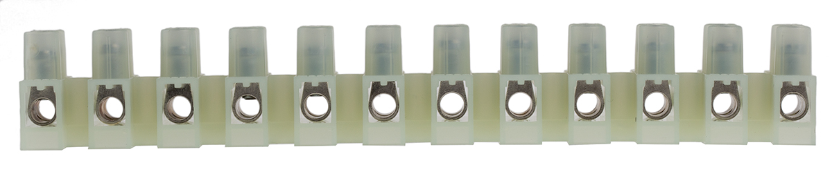 This is Non-Fused Terminal Block 12 Way/Pole Screw Down Terminals 6 mm² Through Hole Nylon 400 V manufactured by RS Pro. The manufacturer part number is 492-8716. It is fused no . The high-quality nickel is used as contact plating material. The product is available in through hole configuration. Moreover, the product has a nominal 400 v voltage rating. The product is made from highly stable and reliable nylon. It allows screw down termination method. It comprises 12 ways. Moreover, the product is 12mm. The product has a current rating of 41a. Concerning wire's size, it is 6 mm². It has a maximum operating temperature of +125°c. The product is made from sturdy brass materials.