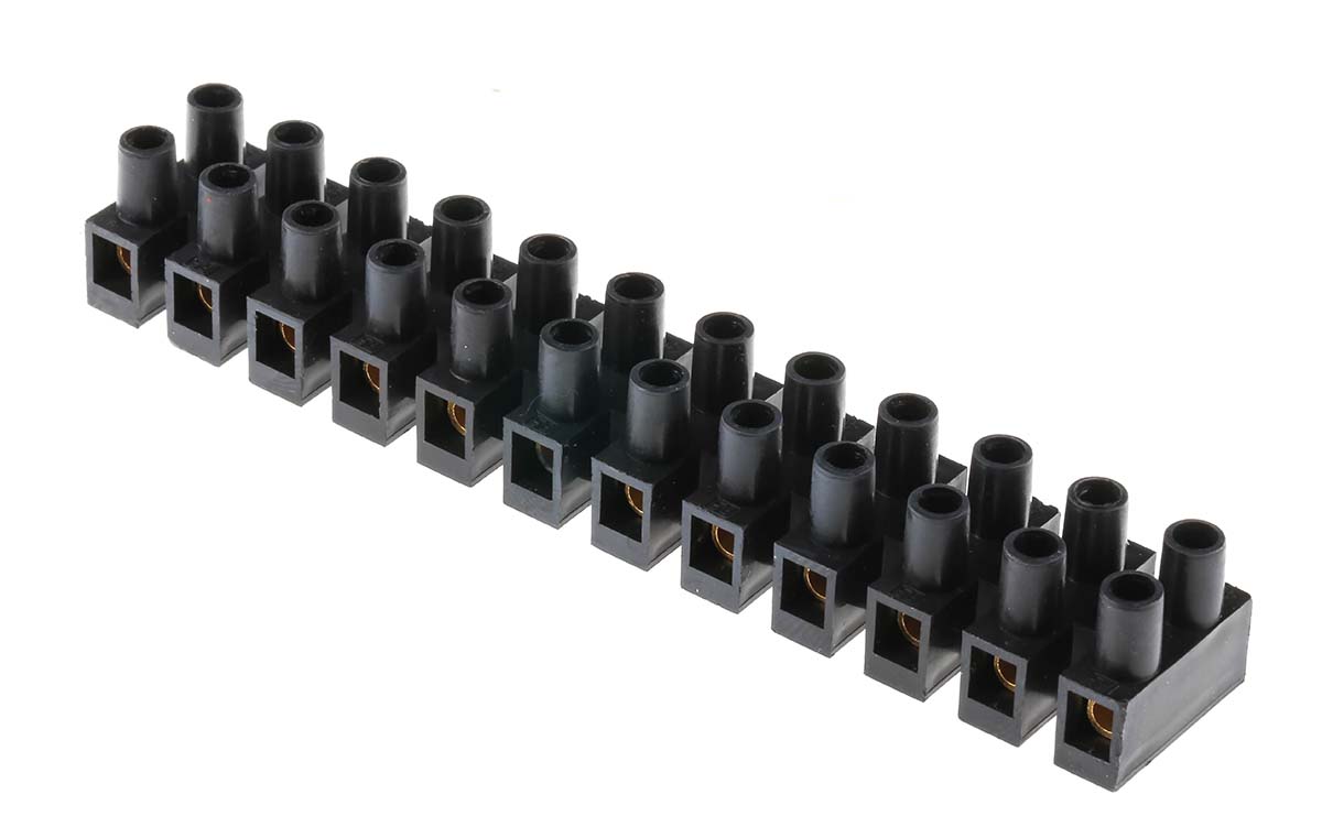 This is Terminal Strip Straight 12way 2 Row 10mm Fixing Centres 24A 380 V length 116.5mm Black manufactured by RS Pro. The manufacturer part number is 703-3836. The product has a current rating of 24a. It is fused no . Moreover, the product has a nominal 380 v voltage rating. It has a decent black colour. The product is made from highly stable and reliable polypropylene. It allows screw termination method. It comprises 12 ways. Moreover, the product is 10mm. The cross section area of the cable includes 4mm². Concerning wire's size, it is 4 mm². It has a maximum operating temperature of +80°c.