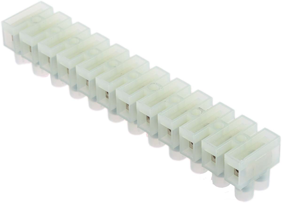 This is Non-Fused Terminal Block 12 Way/Pole Screw Down Terminals 2.5 mm² Through Hole Nylon 380 V manufactured by RS Pro. The manufacturer part number is 492-8687. The product is made from sturdy brass materials. It is fused no . The high-quality nickel is used as contact plating material. The product is available in through hole configuration. Moreover, the product has a nominal 380 v voltage rating. The product is made from highly stable and reliable nylon. It allows screw down termination method. It comprises 12 ways. Moreover, the product is 8mm. The product has a current rating of 24a. Concerning wire's size, it is 2.5 mm². It has a maximum operating temperature of +125°c. Additionally, it has a wire protection characteristic no .