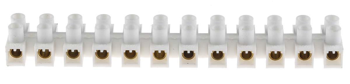 This is Non-Fused Terminal Block 12 Way/Pole Screw Down Terminals 6 AWG PP 400 V manufactured by RS Pro. The manufacturer part number is 703-3820. The product has a current rating of 76a. It is fused no . Whereas, the minimum operating temperature of the product is -40°c. Moreover, the product has a nominal 400 v voltage rating. It has a decent white colour. The product is made from highly stable and reliable pp. It allows screw down termination method. It comprises 12 ways. Moreover, the product is 15mm. The cross section area of the cable includes 16mm². Concerning wire's size, it is 6 awg. It has a maximum operating temperature of +85°c. The product is made from sturdy brass materials.