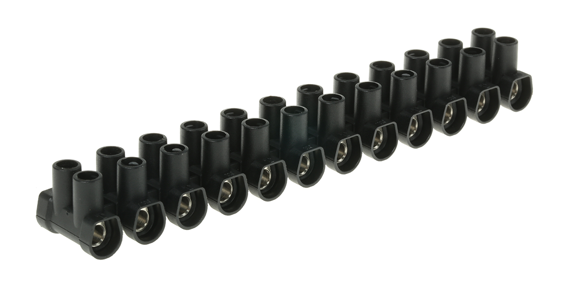 This is Terminal Strip Straight 12way M3.5 2 Row 57A 450 V ac length 142mm Black manufactured by CAMDENBOSS. The manufacturer part number is CTSOS434/12BK. The product has a current rating of 57a. It is fused no . Moreover, the product has a nominal 450 v ac voltage rating. It has a decent black colour. The product is made from highly stable and reliable polypropylene. It allows screw termination method. Whereas, the minimum operating temperature of the product is -30°c. Moreover, the product is 12mm. The cross section area of the cable includes 10mm². Concerning wire's size, it is 10 mm². It has a maximum operating temperature of +110°c.