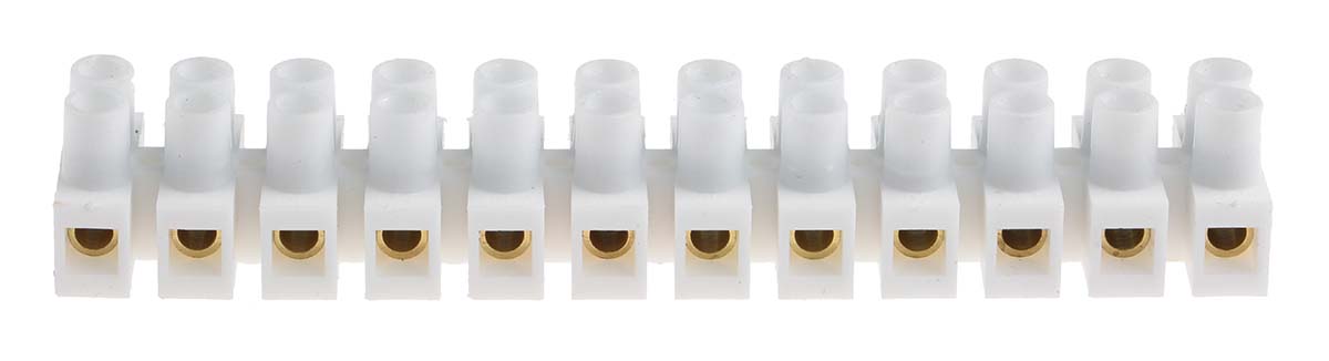 This is Non-Fused Terminal Block 12 Way/Pole Screw Down Terminals 14 AWG PP 400 V manufactured by RS Pro. The manufacturer part number is 703-3814. The product has a current rating of 6a. It is fused no . Whereas, the minimum operating temperature of the product is -40°c. Moreover, the product has a nominal 400 v voltage rating. It has a decent white colour. The product is made from highly stable and reliable pp. It allows screw down termination method. It comprises 12 ways. Moreover, the product is 8mm. The cross section area of the cable includes 2.5mm². Concerning wire's size, it is 14 awg. It has a maximum operating temperature of +85°c. The product is made from sturdy brass materials.