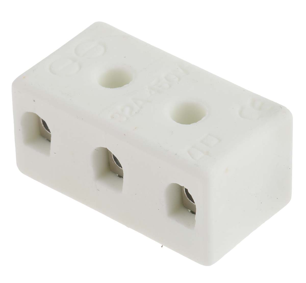 This is Non-Fused Terminal Block 3 Way/Pole Screw Down Terminals 12 AWG Ceramic 450 V manufactured by RS Pro. The manufacturer part number is 703-3855. The product has a current rating of 32a. It is fused no . The high-quality nickel is used as contact plating material. Moreover, the product has a nominal 450 v voltage rating. It has a decent white colour. The product is made from highly stable and reliable ceramic. It comprises 3 ways. It allows screw down termination method. The cross section area of the cable includes 4mm². Concerning wire's size, it is 12 awg. It has a maximum operating temperature of +800°c. Whereas, the minimum operating temperature of the product is -40°c. The product is made from sturdy brass materials.