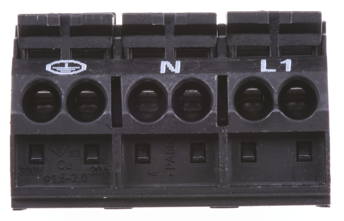 This is Non-Fused Terminal Block 3 Way/Pole Spring Cage Terminals 20 → 12 AWG Pluggable to basic module 500 V manufactured by Wago. The manufacturer part number is 862-1503. The product is certified with no hazardous area certification. terminal strip is a versatile product designed to provide user-defined applications. It is fused no . The product is designed with a cage clamp termination. The product 862, is a highly preferred choice for users. It has a decent black colour. The product is made from highly stable and reliable polyamide. Features a 32a current in A. It carries a 500 v of voltage. The product is made from sturdy copper materials. The cross section area of the cable includes 4 mm². It comprises 3 ways. Concerning wire's size, it is 20/12 awg. It is enclosed yes .