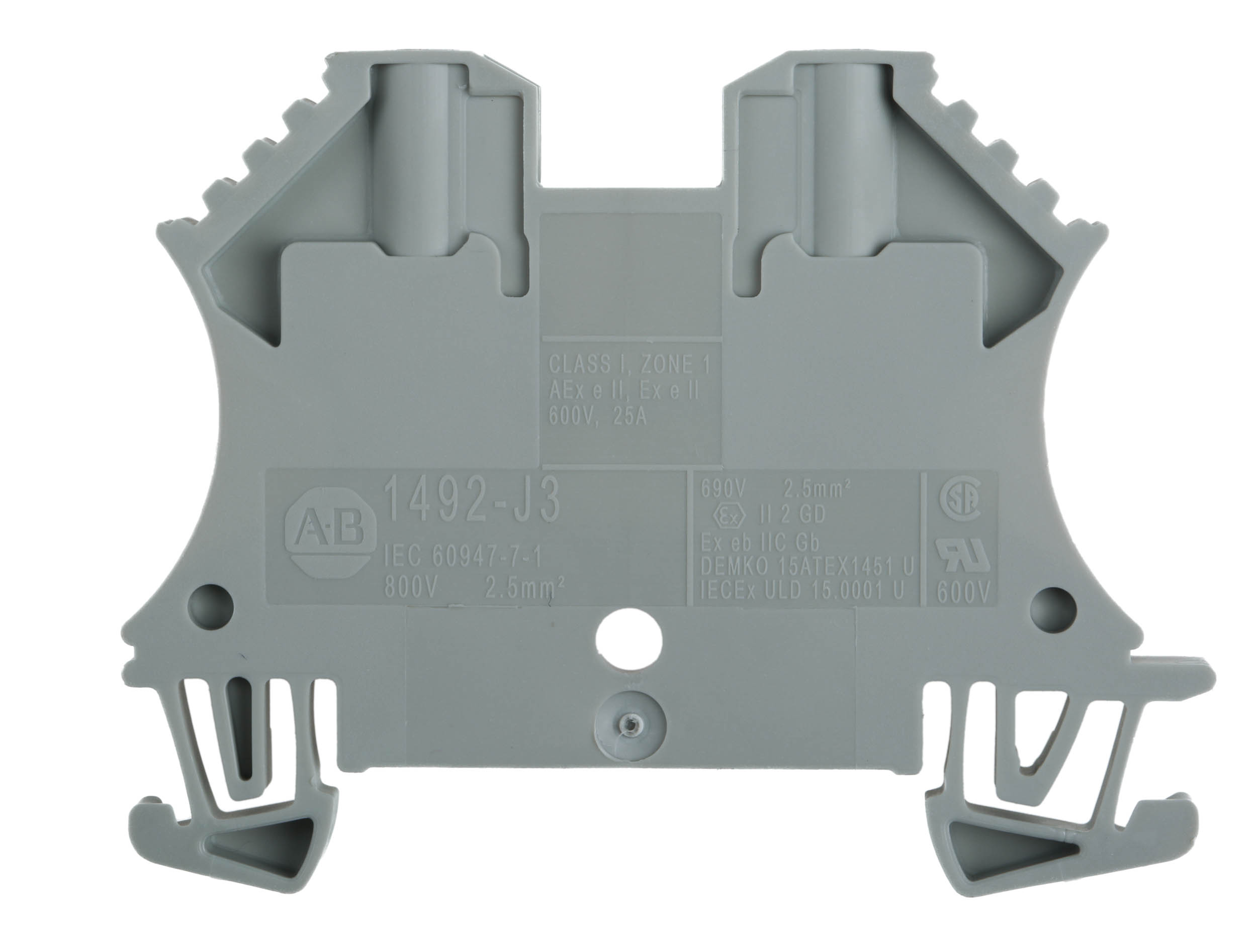 This is Series Feed Through Terminal Block 2-Way 25A 28 - 12 AWG Wire Screw Termination manufactured by Allen Bradley. The manufacturer part number is 1492-J3. It is fused no . The product is available in din rail configuration. Moreover, the product has a nominal 600 v voltage rating. In addition, female is the available "Gender" of the product. Moreover, the product is 2.5mm. It allows screw termination method. It comprises 2 ways. The product 1492-j3, is a highly preferred choice for users. The product has a current rating of 25a. Concerning wire's size, it is 28 - 12 awg.
