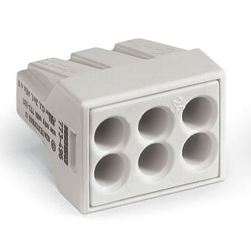This is 773 Series Junction Box Connector 6-Way 24A 18 → 14 AWG Wire Push In Termination manufactured by WAGO. The manufacturer part number is 773-496. The product 773, is a highly preferred choice for users. Concerning wire's size, it is 18 → 14 awg. The product has a current rating of 24a. It comprises 6 ways. It allows push in termination method.