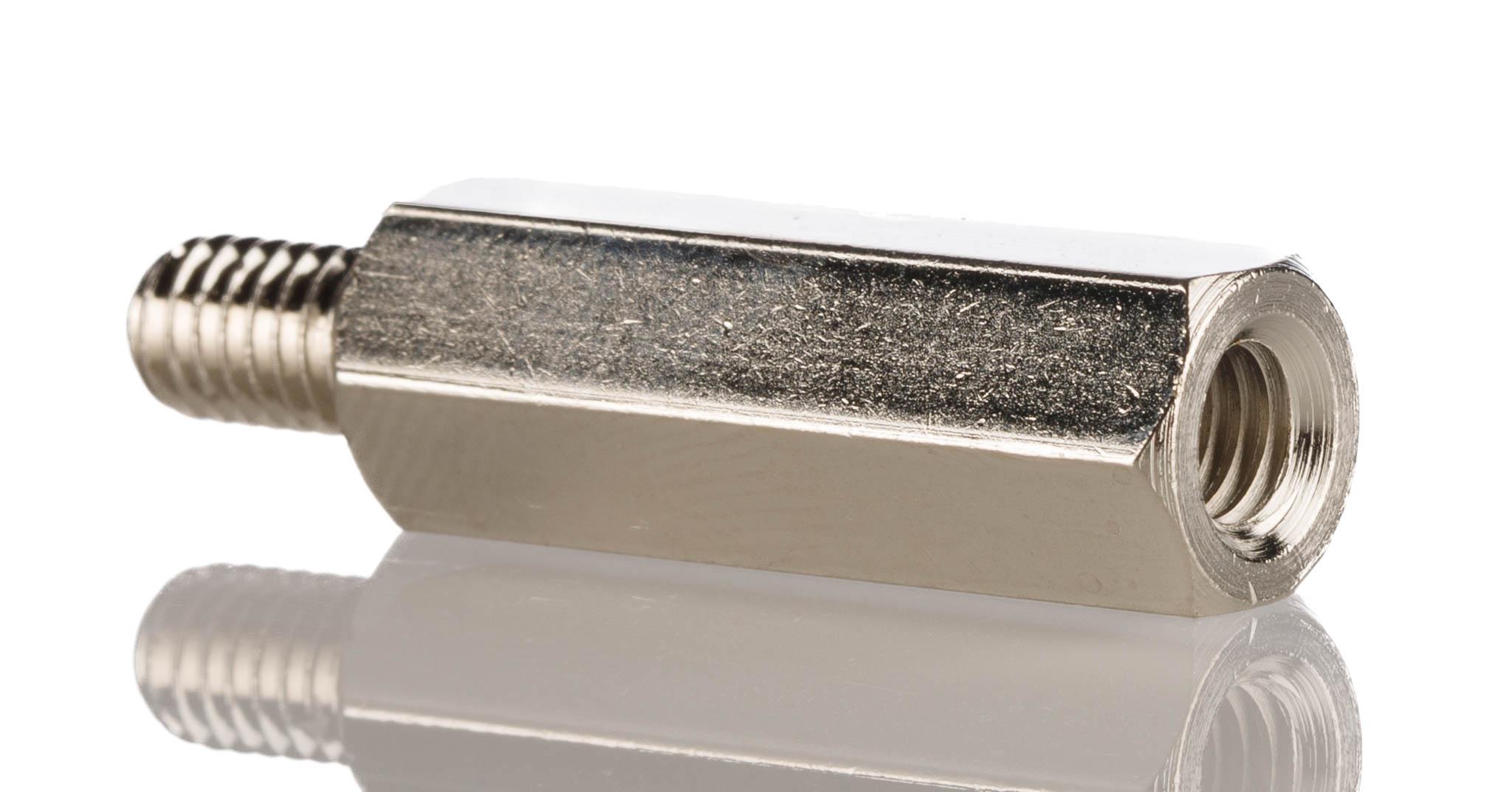 This is Steel Hex Standoff Male/Female 30mm M6 x M6 manufactured by RS Pro. The manufacturer part number is 806-6679. A quality product with a nice nickel plated finish. Its hole depth is 15mm . It has a hex shape body . It has a standard 10mm hex size across flat . The product is made from highly stable and reliable steel. It has a typical thread size of m6 x m6. Its body length is 30mm. It has a male/female type gender . Its stud is 10mm in length . The product has a premium-quality m6 thread size B . It has a standard m6 thread size A .