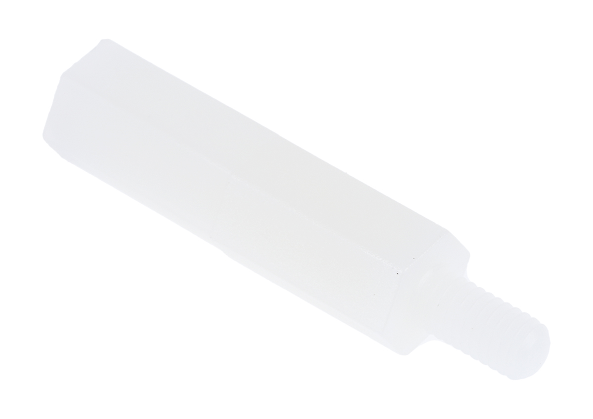 This is Nylon Hex Standoff Male/Female 20mm M3 x M3 manufactured by RS Pro. The manufacturer part number is 325-750. A quality product with a nice plain finish. Its hole depth is 10mm . It has a hex shape body . It has a standard 5.6mm hex size across flat . The product is made from highly stable and reliable nylon 66. It has a typical thread size of m3 x m3. Its body length is 20mm. It has a male/female type gender . Its stud is 6mm in length . The product has a premium-quality m3 thread size B . It has a standard m3 thread size A .