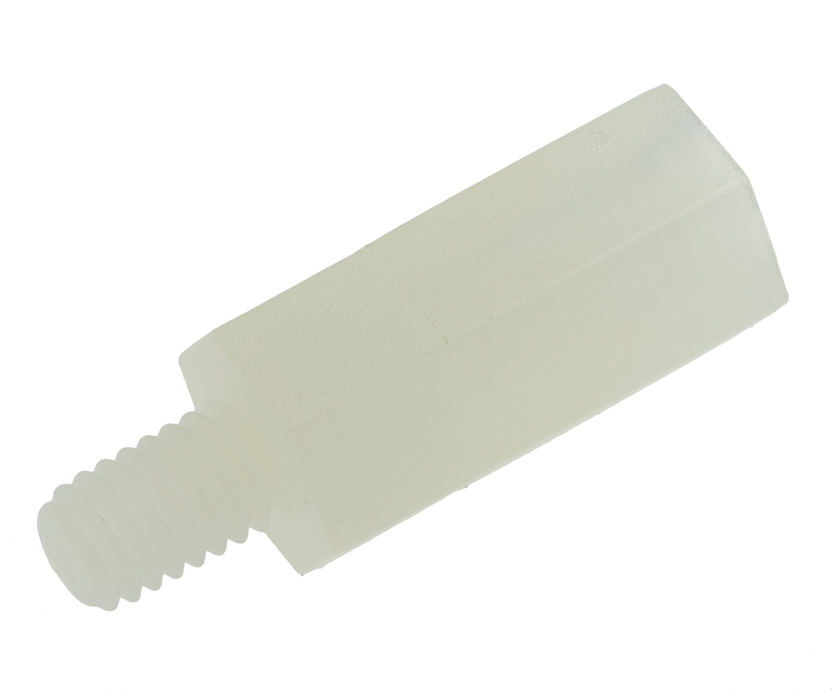 This is Nylon Hex Standoff Male/Female 15mm M4 x M4 manufactured by RS Pro. The manufacturer part number is 325-788. A quality product with a nice plain finish. Its hole depth is 10mm . It has a hex shape body . It has a standard 7mm hex size across flat . The product is made from highly stable and reliable nylon 66. It has a typical thread size of m4 x m4. Its body length is 15mm. It has a male/female type gender . Its stud is 6mm in length . The product has a premium-quality m4 thread size B . It has a standard m4 thread size A .