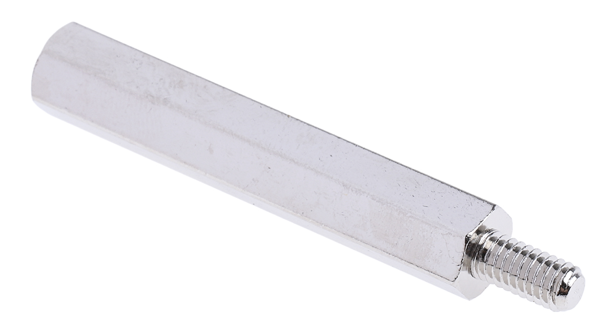 This is Brass Hex Standoff Male/Female 40mm M4 x M4 manufactured by RS Pro. The manufacturer part number is 806-6730. A quality product with a nice nickel plated finish. Its hole depth is 15mm . It has a hex shape body . It has a standard 7mm hex size across flat . The product is made from highly stable and reliable brass. It has a typical thread size of m4 x m4. Its body length is 40mm. It has a male/female type gender . Its stud is 8mm in length . The product has a premium-quality m4 thread size B . It has a standard m4 thread size A .