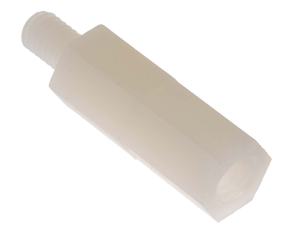 This is Nylon Hex Standoff Male/Female 19mm M4 x M4 manufactured by RS Pro. The manufacturer part number is 325-794. A quality product with a nice plain finish. Its hole depth is 10mm . It has a hex shape body . It has a standard 7mm hex size across flat . The product is made from highly stable and reliable nylon 66. It has a typical thread size of m4 x m4. Its body length is 19mm. It has a male/female type gender . Its stud is 6mm in length . The product has a premium-quality m4 thread size B . It has a standard m4 thread size A .