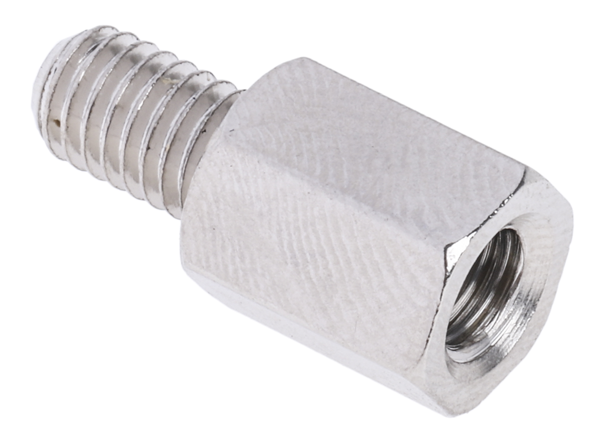 This is Brass Hex Standoff Male/Female 10mm M5 x M5 manufactured by RS Pro. The manufacturer part number is 806-6632. A quality product with a nice nickel plated finish. Its hole depth is 8.5mm . It has a hex shape body . It has a standard 8mm hex size across flat . The product is made from highly stable and reliable brass. It has a typical thread size of m5 x m5. Its body length is 10mm. It has a male/female type gender . Its stud is 8mm in length . The product has a premium-quality m5 thread size B . It has a standard m5 thread size A .