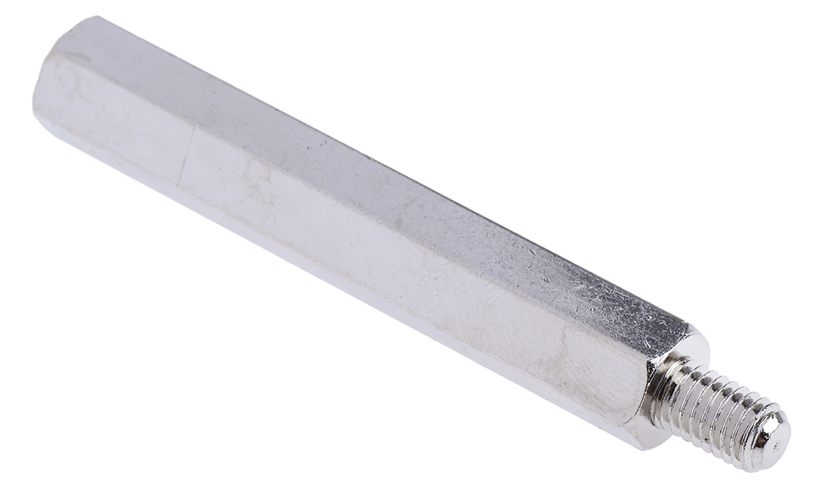 This is Brass Hex Standoff Male/Female 50mm M5 x M5 manufactured by RS Pro. The manufacturer part number is 806-6651. A quality product with a nice nickel plated finish. Its hole depth is 15mm . It has a hex shape body . It has a standard 8mm hex size across flat . The product is made from highly stable and reliable brass. It has a typical thread size of m5 x m5. Its body length is 50mm. It has a male/female type gender . Its stud is 8mm in length . The product has a premium-quality m5 thread size B . It has a standard m5 thread size A .