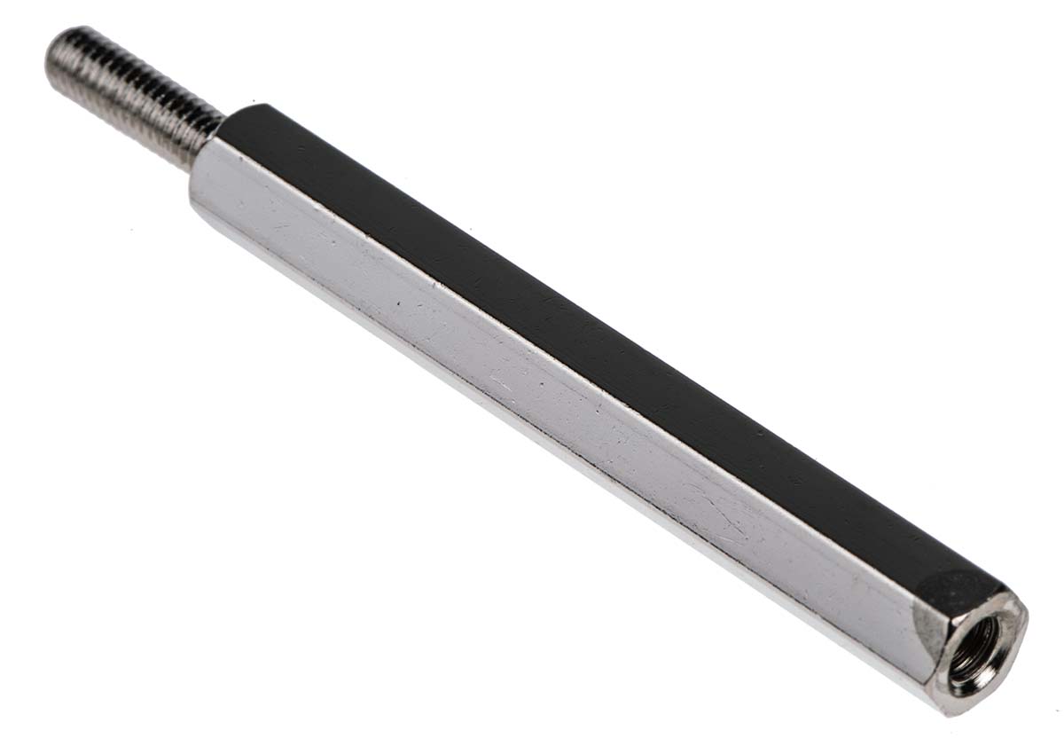 This is Brass Hex Standoff Male/Female 40mm M3 x M3 manufactured by RS Pro. The manufacturer part number is 221-184. A quality product with a nice nickel plated finish. Its hole depth is 10mm . It has a hex shape body . It has a standard 5mm hex size across flat . The product is made from highly stable and reliable brass. It has a typical thread size of m3 x m3. Its body length is 40mm. It has a male/female type gender . Its stud is 10mm in length . The product has a premium-quality m3 thread size B . It has a standard m3 thread size A .