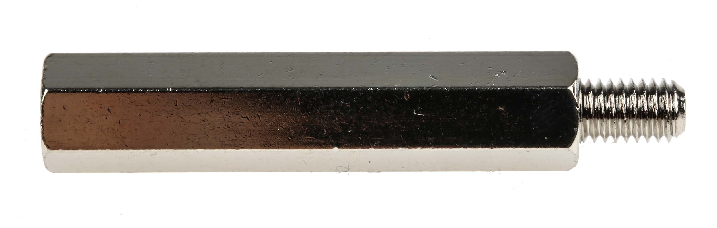 This is Brass Hex Standoff Male/Female 40mm M5 x M5 manufactured by RS Pro. The manufacturer part number is 806-6654. A quality product with a nice nickel plated finish. Its hole depth is 15mm . It has a hex shape body . It has a standard 8mm hex size across flat . The product is made from highly stable and reliable brass. It has a typical thread size of m5 x m5. Its body length is 40mm. It has a male/female type gender . Its stud is 8mm in length . The product has a premium-quality m5 thread size B . It has a standard m5 thread size A .