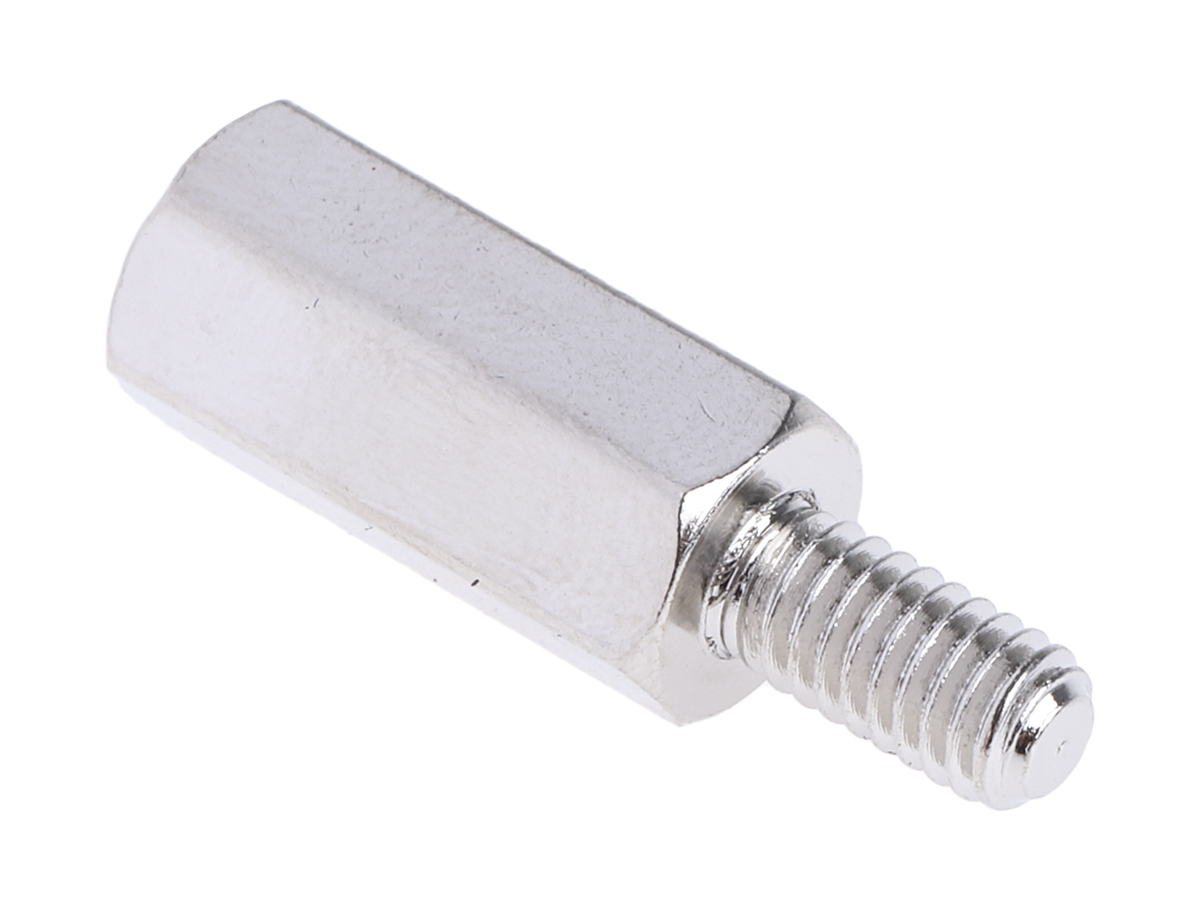 This is Brass Hex Standoff Male/Female 15mm M4 x M4 manufactured by RS Pro. The manufacturer part number is 806-6727. A quality product with a nice nickel plated finish. Its hole depth is 13mm . It has a hex shape body . It has a standard 7mm hex size across flat . The product is made from highly stable and reliable brass. It has a typical thread size of m4 x m4. Its body length is 15mm. It has a male/female type gender . Its stud is 8mm in length . The product has a premium-quality m4 thread size B . It has a standard m4 thread size A .