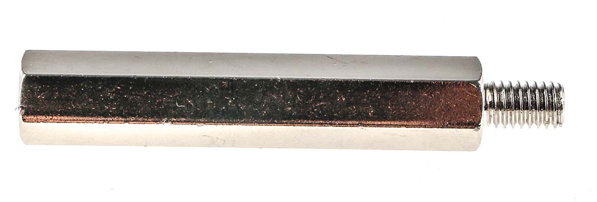 This is Steel Hex Standoff Male/Female 55mm M6 x M6 manufactured by RS Pro. The manufacturer part number is 806-6698. A quality product with a nice nickel plated finish. Its hole depth is 15mm . It has a hex shape body . It has a standard 10mm hex size across flat . The product is made from highly stable and reliable steel. It has a typical thread size of m6 x m6. Its body length is 55mm. It has a male/female type gender . Its stud is 10mm in length . The product has a premium-quality m6 thread size B . It has a standard m6 thread size A .