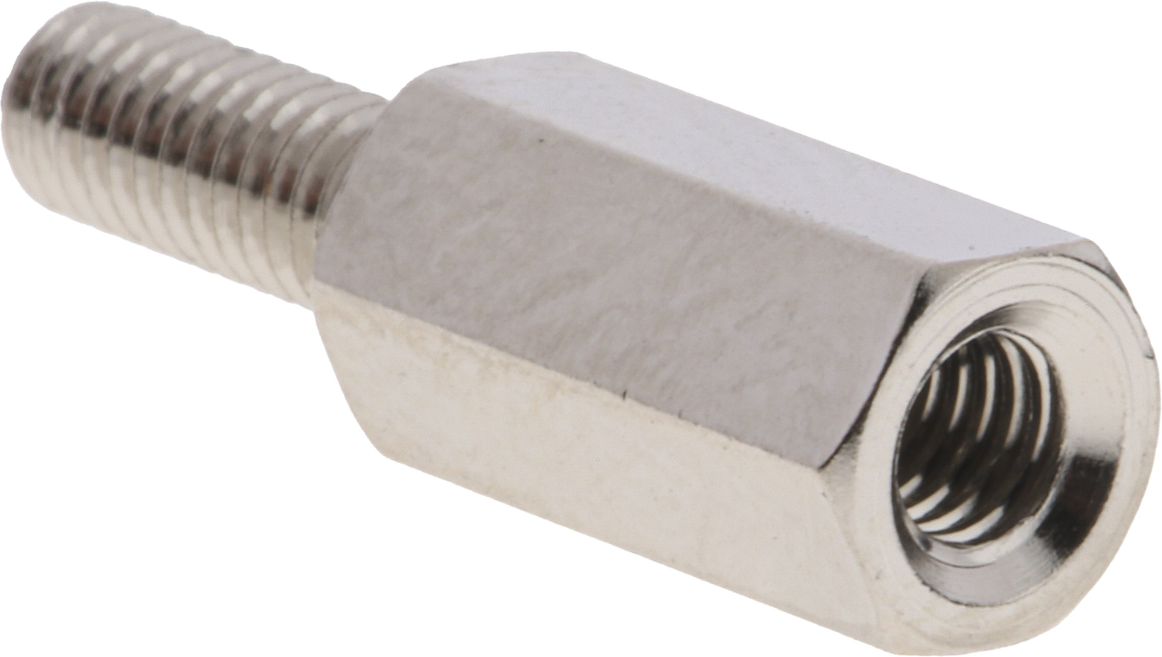 This is Brass Hex Standoff Male/Female 10mm M3 x M3 manufactured by RS Pro. The manufacturer part number is 606-686. A quality product with a nice nickel plated finish. Its hole depth is 5mm . It has a hex shape body . It has a standard 5mm hex size across flat . The product is made from highly stable and reliable brass. It has a typical thread size of m3 x m3. Its body length is 10mm. It has a male/female type gender . Its stud is 8mm in length . The product has a premium-quality m3 thread size B . It has a standard m3 thread size A .