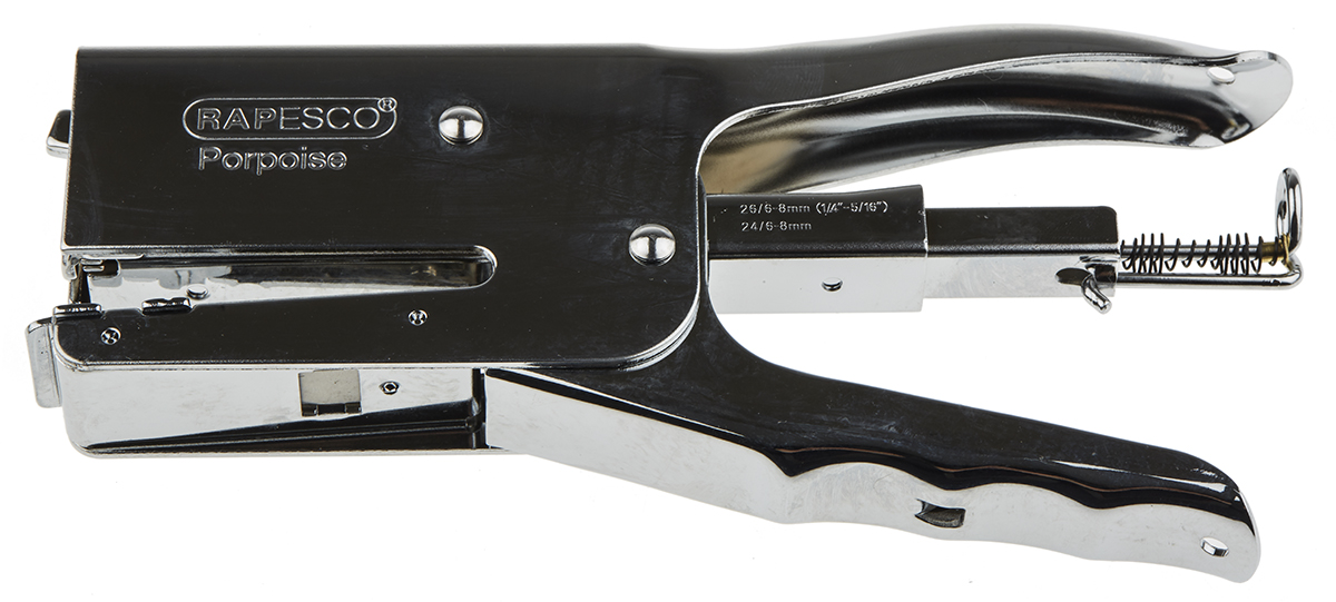 This is Porpoise Classic Stapling Plier manufactured by Rapesco. The manufacturer part number is R81000A3. Its sheet capacity is about 20 . It has a model r81000a3. Moreover, it has an insertion depth of 59mm . It comes in plier configuration. In addition, it is for staple size about 24/6 mm .