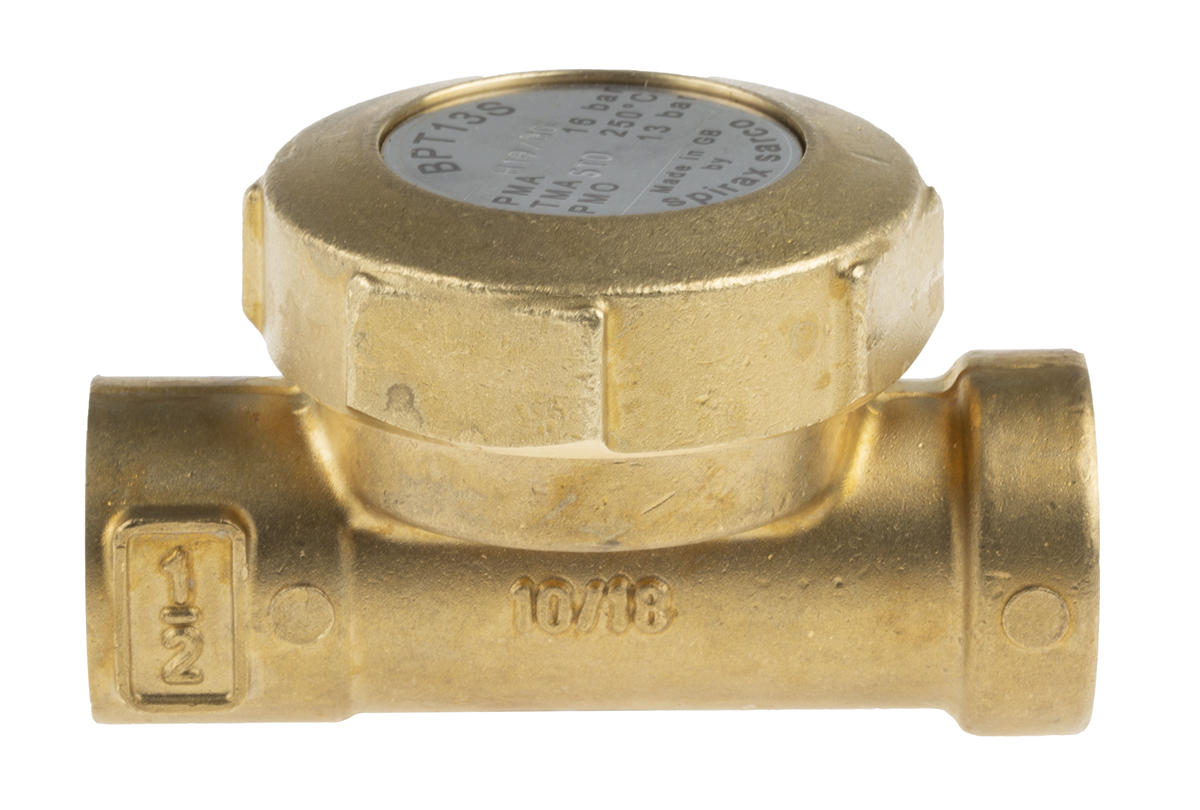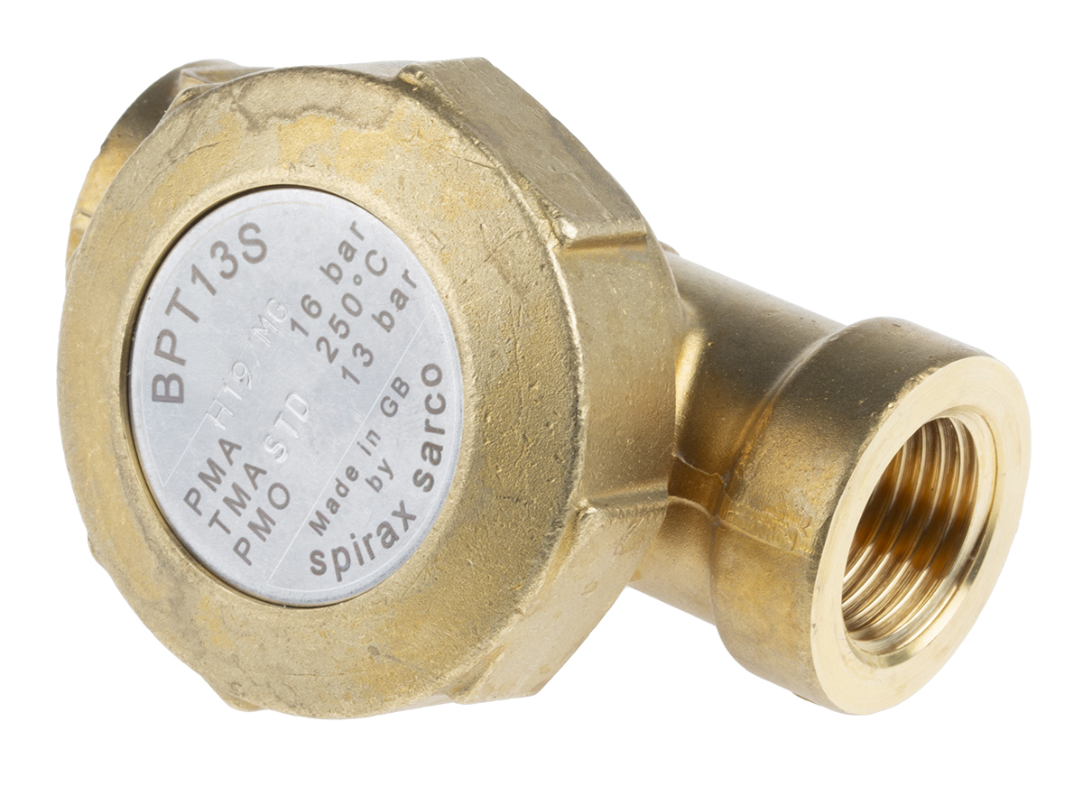 Balanced Pressure Steam Trap BPT13 - Brass Compact design reduces installation space requirements in comparison to other types of steam trap High resistance to superheat and water-hammer ensures long working life and reduces maintenance Automatically discharges air and non-condensing gases to aid rapid warm-up of plant Unaffected by back pressure which can lead to plant water-logging Brass body and cap with stainless steel internal parts Technical Specifications & Materials Max differential pressure Cold hydraulic test pressure Max. op. temp. Capsule material Cover material Disc or Valve seat material O ring material 13 bar 24 bar 250 °C Stainless steel Brass Stainless steel Synthetic rubber